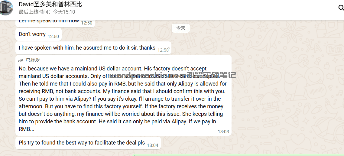 - 2026年第一个新客户——其实也不算第一个,算是25年最后一个客户,拖了两个月还没处理完。整整快两个月了,其实一个月左右的时候已经报完价,那时本来要下单了,又要各种证书、各种报价、各种砍价,感觉所有流程该扯的扯完了,该耗的也耗过了,以为终于能下了,结果又过了一个月。客户说他自有安排,可能是有库存还是怎么的。很多非洲客户,尤其散货、小单(如果不是整柜的),在国内好像都有自己的代理,英文叫agent,常叫“指代”的。她们一般帮客户发货、也帮客户付款——很多是付人民币的。和客户之间怎么处理钱的,不清楚,但付人民币挺常见,很多时候还用支付宝。但对于大单,不建议用这种方式,不安全也不合规,还是建议大家走正规渠道。说回这些“指代”的特点:和客户一般合作很久了,很多年了。但服务态度常常不怎么样,有的态度恶劣,甚至飙脏话的都有。不过也看人下菜——如果你工厂实力在线,有些“指代”也不会太过分。当然也分人,有的素质确实不行,这既看你工厂的实力,也看对方本身的素质。另外还发现“指代”的一个新特点:以前只觉得态度不好,因为总觉得“客户是他们的客户,不是你的”,所以不太配合工厂。但后来遇到有的“指代”不凶不骂,就跟你各种扯、各种设置障碍,也不知道图什么。之前碰到一个,什么都谈好了,到付款时老喜欢打电话——发现国内这些代理特爱打电话——打过来说:“你们工厂在哪儿?是不是真?营业执照发来看看……”说着说着就开始要佣金:“还没跟你提一个重要的事,忘了——佣金还没谈。”有时候有同学会说,如果不给“指代”一点佣金,可能从中作梗,毕竟和客户认识久了,说你几句坏话。其实不用担心——如果几句话就能让客户不跟你做,如果是小单,那判断一下,没必要接;如果是大单,就好好把握住。因为很多产品根据其特性,本身就容易被市场挖走,客户也随市场流动——他不随你这个人,也不随你的专业性,甚至不随工厂的研发生产实力,他就跟着市场走。