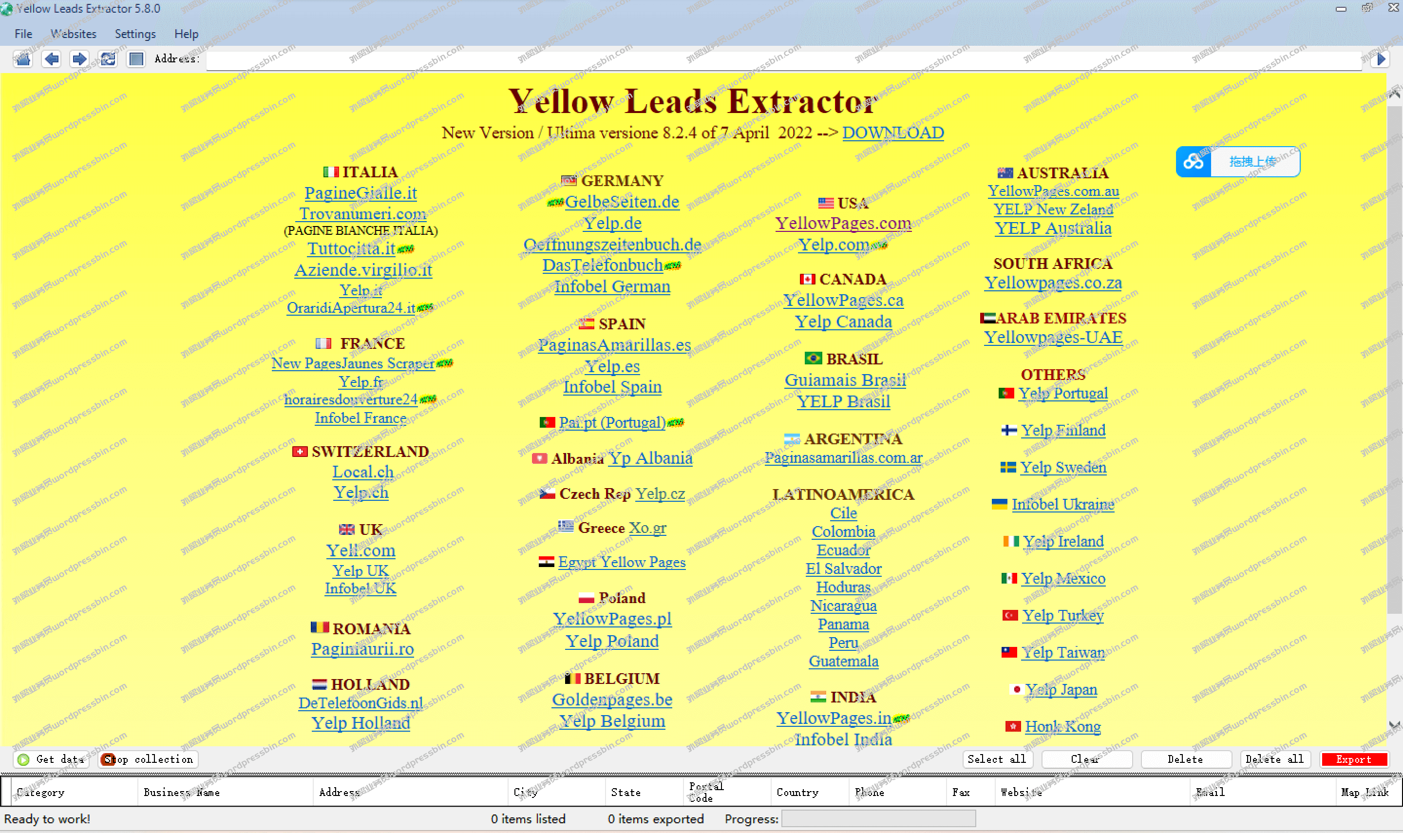 Yellow Leads Extractor 5.8.0 Cracked Version破解版,黄页爬取,汇聚全球主流黄页,外贸客户开发,黄页客户爬取专用软件,不用写脚本,傻瓜式操作,一键提取,一键导出,外贸实战笔记亲测可用。